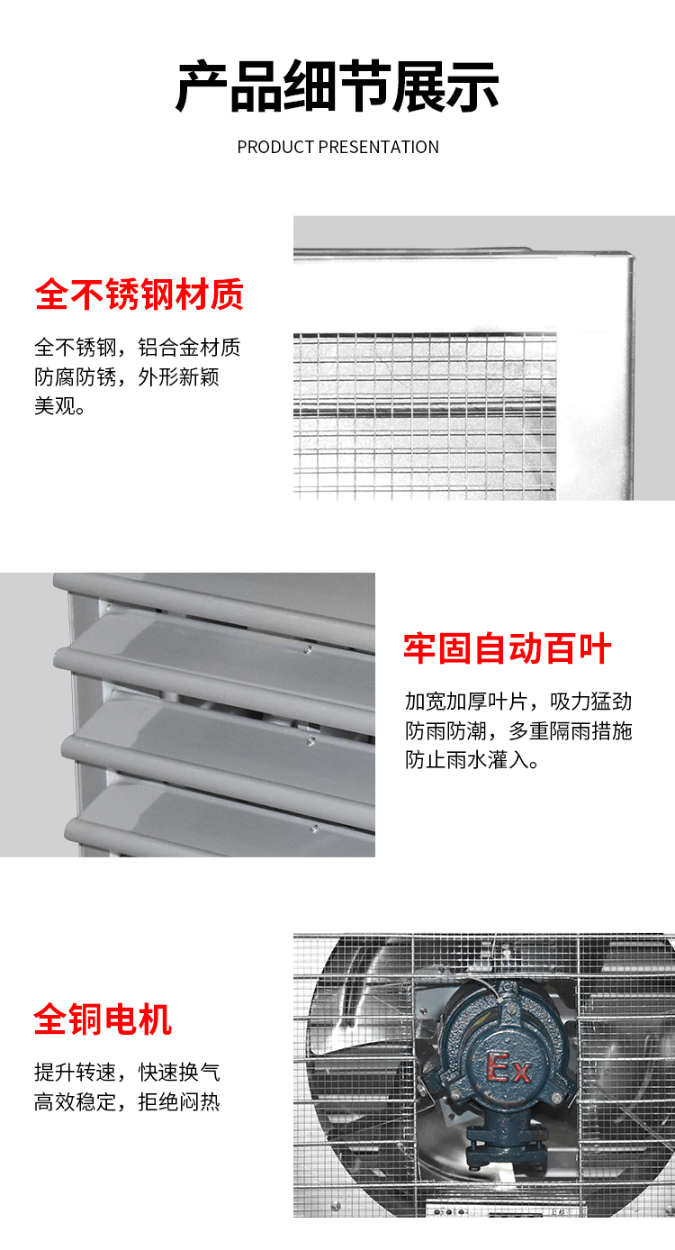 ● 独特的风叶设计,通风量更大,噪音却更小,适合居民区使用