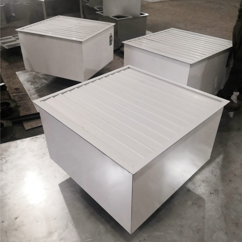 3、风机带有消声外壳,内置吸声材料,方形整体安装牢固、振动小、运行平稳、噪音低。